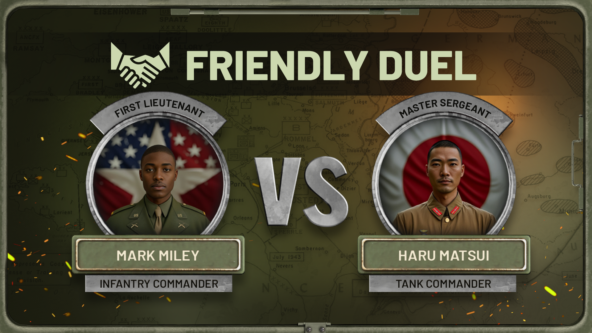 For those who wish to test their wits against their friends, Friendly games are an option in Storm Warfare by challenging a friend to a match. Outcomes of these matches are scored, and you can track who prevails over the other on the eternal Versus Scoreboard. In order to issue a challenge, players must be friends with each other using the in-game social feature. Using the very same feature, any online friend can be challenged into a match. These matches are not ranked and do not grant Commander and account-level progress.
